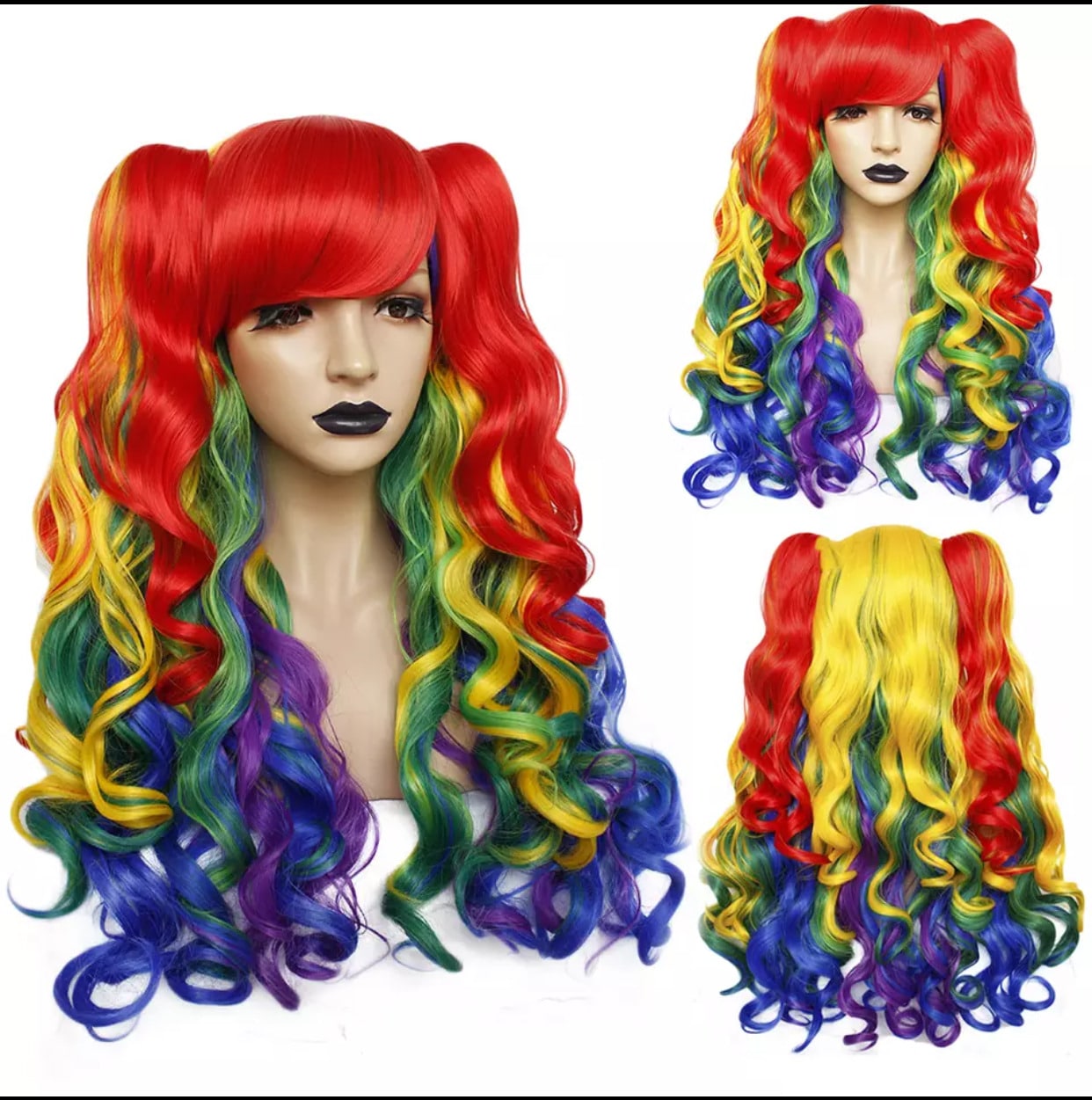 Cosplay Wig Rainbow with detachable Rainbow Pig Tails